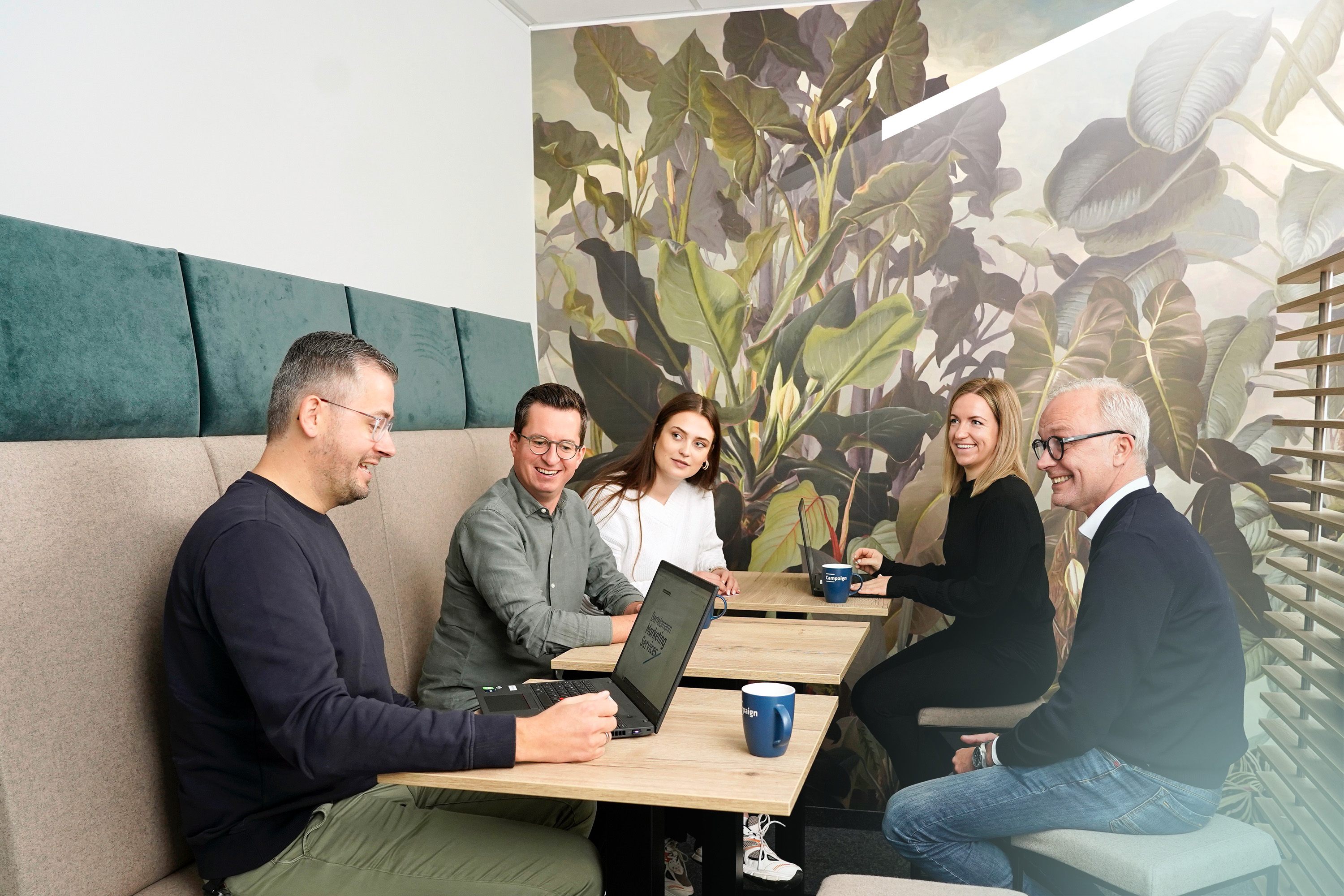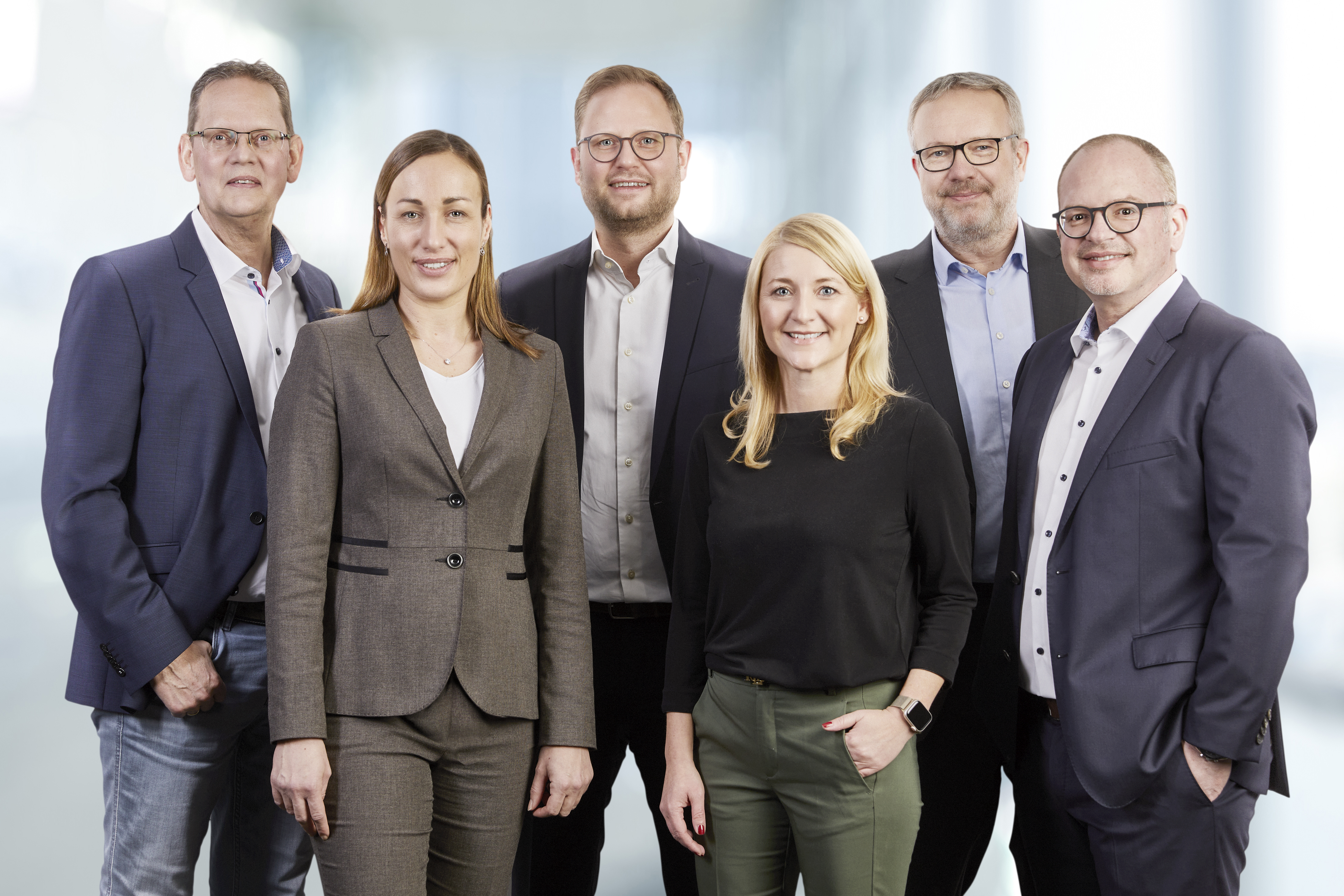 Von links nach rechts: Norbert Schaa (Director Finance), Sandra Witthuhn (Director HR), Nik Bockmann (Geschäftsführer), Inka Gelbrich (Vice President Marketing Campaign Solution), Michael Tigges (Vice President Operations), Michael Absolon (Vice President Data & Experience Solutions)